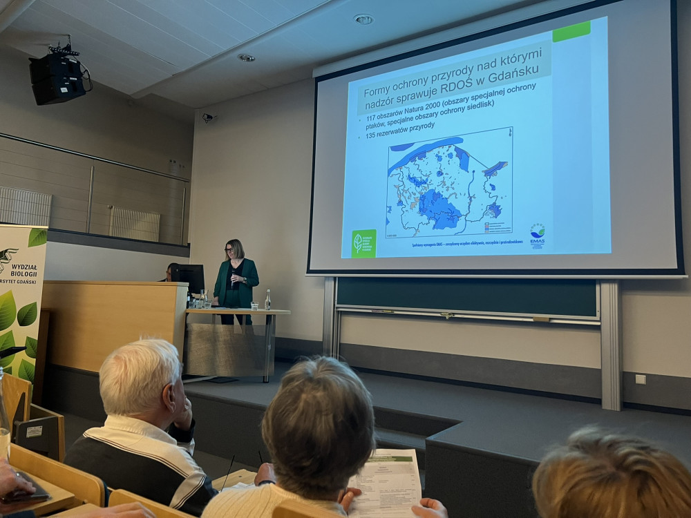 Uroczystość rozpoczęło przemówienie Wicewojewody Pomorskiej Anny Olkowskiej-Jacyno oraz Dyrektora Regionalnej Dyrekcji Lasów Państwowych w Gdańsku Andrzeja Schlesera, którzy podkreślili potrzebę współpracy środowiska naukowego, przedstawicieli władz samorządowych i instytucji państwowych oraz zaprosili do wysłuchania debaty. Następnie dr hab. Mateusz Ciechanowski, adiunkt Wydziału Biologii UG, przybliżył słuchaczom wyniki najnowszych badania naukowych z zakresu wpływu biernej i aktywnej ochrony przyrody oraz gospodarki leśnej na różnorodność biologiczną. Kolejne wystąpienie Z-cy Dyrektora Pomorskiego Zespołu Parków Krajobrazowych Barbary Utrackiej-Minko dotyczyło potrzeby uwzględniania zapisów planów ochrony parków krajobrazowych w planach urządzenia lasu i rocznych planach gospodarczych. Wypracowane dobre praktyki wsparcia gatunków chronionych, współpracę w zakresie czynnej ochrony przyrody, a także działalności edukacyjnej i promocji walorów przyrodniczych województwa pomorskiego zaprezentowali pracownicy parków krajobrazowych: Dariusz Ożarowski (Trójmiejski PK), Andrzej Penk (Wdzydzki PK), Paweł Grzempa (Zaborski PK). Następnie głos zabrała Regionalna Konserwator Przyrody, Z-ca Dyrektora RDOŚ Magdalena Jaśniewska, która podczas prelekcji wskazała na konieczność uwzględniania przez PGL Lasy Państwowe ustaleń planów zadań ochronnych dla obszarów Natura 2000, a także na problem błędnie z punktu widzenia ochrony przyrody wyznaczonych granic niektórych rezerwatów przyrody. Dyrektor Regionalnego Zarządu Gospodarki Wodnej w Gdańsku Andrzej Ryński przedstawił zakres zadań realizowanych przez PGW Wody Polskie w Gdańsku, a Zastępca Dyrektora ds. Gospodarki Leśnej RDPL w Gdańsku Marek Kowalewski omówił zagadnienia związane z: zarządzaniem leśnymi obszarami cennymi przyrodniczo, lasami ochronnymi, funkcjonowaniem zbiorowisk leśnych, a także konfliktami w przypadku lasów gospodarczych pełniących jednocześnie ważną funkcję społeczną na obszarach zarządzanych przez Regionalną Dyrekcję Lasów Państwowych w Gdańsku.