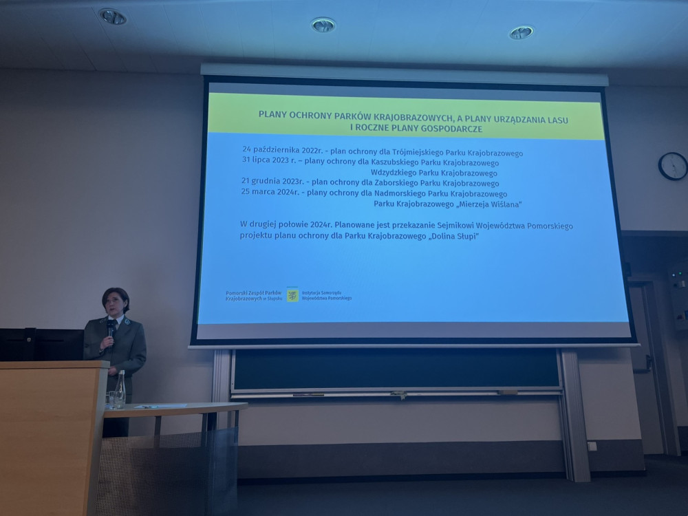Po serii wygłoszonych referatów został otwarty panel dyskusyjny, który moderowali pracownicy Wydziału Biologii UG – dr Magdalena Lazarus i dr hab. Piotr Rutkowski, prof. UG. Podczas debaty poruszano temat zmian jakie następują aktualnie w środowisku przyrodniczym, w tym w związku ze zmianami klimatu. Szczególnie istotną kwestię poruszyła dr hab. Maria Herbichowa wskazując na problem negatywnych zmian hydrologicznych zachodzących w ekosystemach leśnych i bagiennych, a także na konieczność niwelowania tych zmian poprzez mądrą, opartą na danych środowiskowych i wiedzy przyrodniczej gospodarkę wodami, która zwiększy szanse zachowania cennych ekosystemów. Podkreśliła, że działania ochronne ekosystemów zależnych od wód mają szansę powodzenia jedynie w przypadku zadbania o właściwe warunki hydrologiczne całego otoczenia. Kolejne bardzo istotne zagadnienie poruszył dr hab. Mariusz Kistowski, prof. UG podkreślając istotę właściwego zagospodarowania przestrzennego i konieczność kompleksowego podejścia do zagadnień zarządzania zasobami przyrodniczymi. Apelował o potrzebę ścisłego powiazania ochrony krajobrazu z gospodarką przestrzenną już na etapie sporządzania planów ogólnych przez gminy. Niezbędna jest synergia działań i kompleksowe zarządzanie wodami, lasami, terenami rolnymi i zabudową, gdyż wzajemnie silne jest ich wzajemne oddziaływanie. Podczas rozmów pojawił się wątek zamiaru powołania nowych rezerwatów przyrody i potrzeby wymiany informacji oraz konsultacji w tym zakresie. Przedstawiciele pomorskich parków krajobrazowych poruszali temat potrzeby ściślejszej współpracy z pracownikami PGL LP w postaci konsultacji i wypracowywania wspólnych decyzji. Pracownicy PGL LP natomiast zwracali uwagę na problem presji turystycznej i nielegalnej zabudowy na terenach parków krajobrazowych.