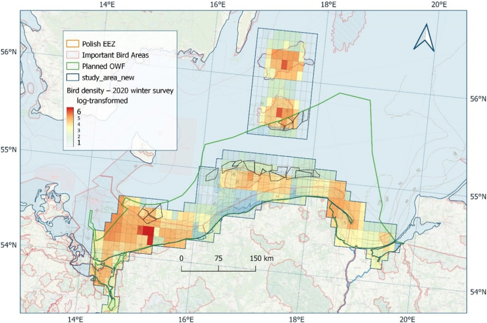 W tej publikacji przedstawiono nowatorskie podejście wykorzystujące uczenie maszynowe, a konkretnie modelowanie metodą Random Forest, do stworzenia mapy wrażliwości, która uwzględnia konflikt między planowanymi morskimi farmami wiatrowymi a zimującymi ptakami w południowej części Morza Bałtyckiego. Metoda opracowana w ramach tej pracy stanowi nowatorskie narzędzie służące do oceny i łagodzenia wpływu rozwoju energii odnawialnej na dziką przyrodę. Południowa część Bałtyku ma kluczowe znaczenie dla zimujących kaczek morskich, takich jak lodówka i uhla. W 2020 r. w południowej i środkowej części Morza Bałtyckiego zimowało około miliona ptaków, w tym ponad 560 000 lodówek i 230 000 uhli. W polskiej wyłącznej strefie ekonomicznej planowane jest wybudowanie 21 farm wiatrowych o łącznej mocy 17,6 GW i szacowanej liczbie 1164 turbin. W publikacji zidentyfikowano obszary o wysokim konflikcie, gdzie obszary zajęte przez przyszłe farmy wiatrowe w znacznym stopniu pokrywają się z obszarami o wysokich zagęszczeniach zimujących ptaków.