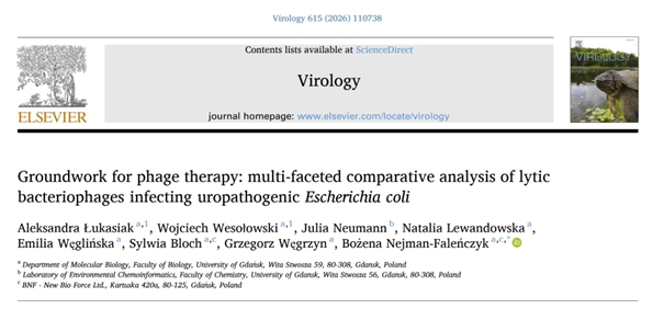 Opublikowany został kolejny artykuł zespołu naukowców z Pracowni Biologii i Biotechnologii Bakteriofagów KBM UG. Zachęcamy do zapoznania się z jego trescią: https://www.sciencedirect.com/science/article/pii/S0042682225003526?dgcid=author. Pierwszymi autorami publikacji są doktoranci Aleksandra Łukasiak oraz Wojciech Wesołowski.