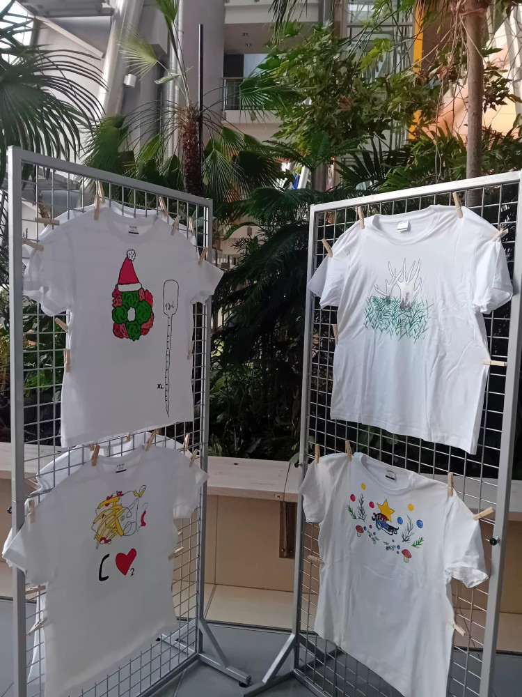 Do czasu Wydziałowego Spotkania Świątecznego wszystkie koszulki można podziwiać w holu głównym Wydziału (tuż obok palm).